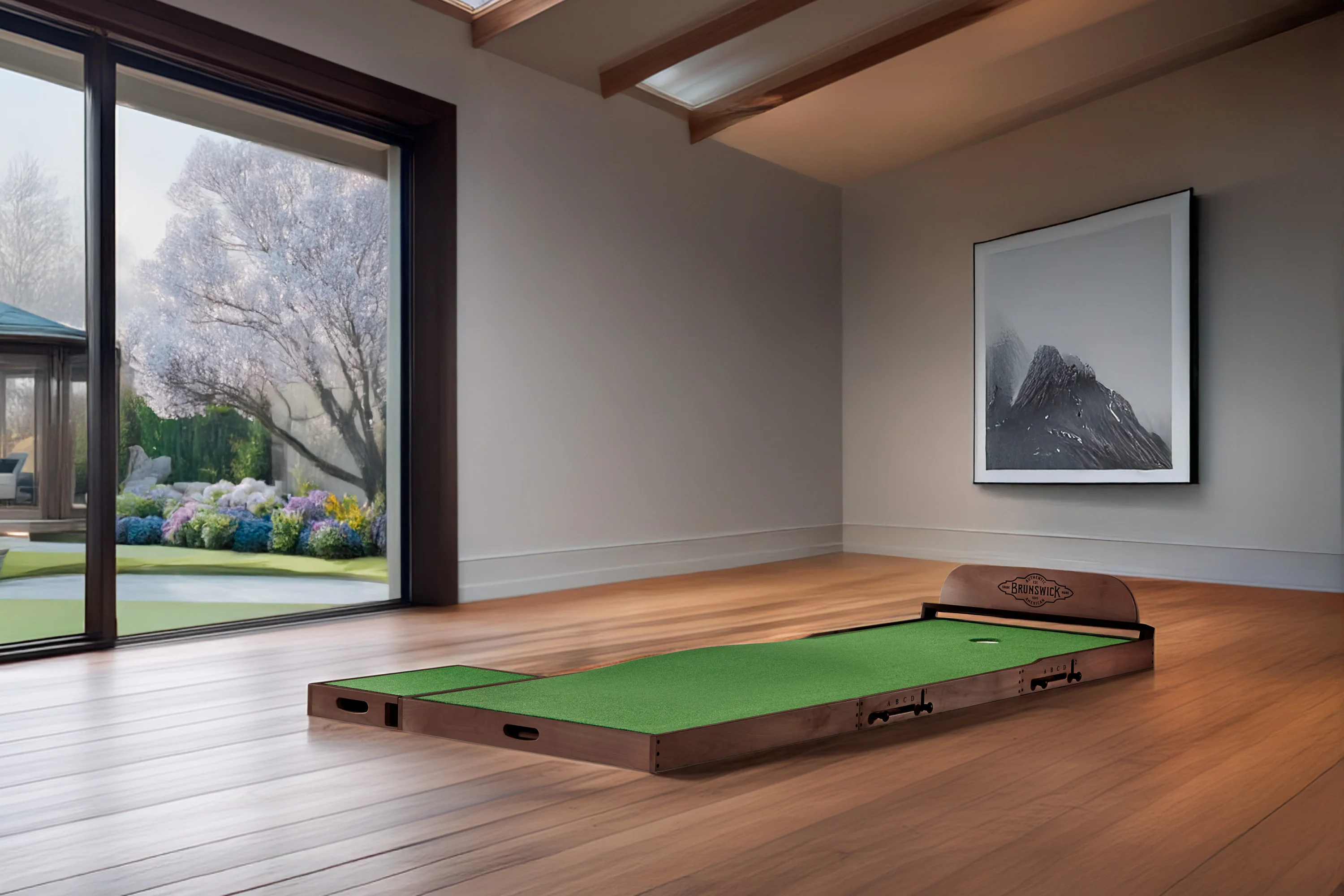 Named for Perry Maxwell, one of the unsung golf course architects of his generation, the Maxwell may seem a bit understated, but don't let its diminutive size fool you. With three break stations on each side of the green and a cup-end that elevates, the Maxwell offers up to 50,000 different break combinations to help you practice all the shots that matter most to your overall game. This putting green comes with everything you need to maximize your putting skills including three, 3' x 3' sections, with one cup, one headboard / ball-stop, a side step and a putter rack that holds up to 4 putters*. With the Maxwell in your home, you’re going to make precision putting on the course look all too easy.